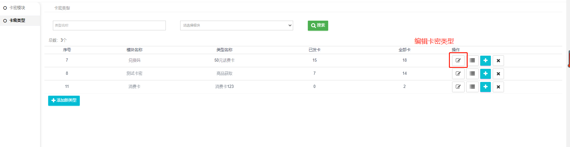 赠送卡密方式:1. 赠送某个模块下的卡密 2. 赠送某个类型的卡密